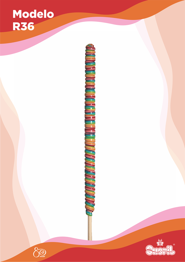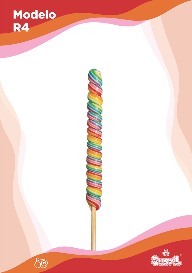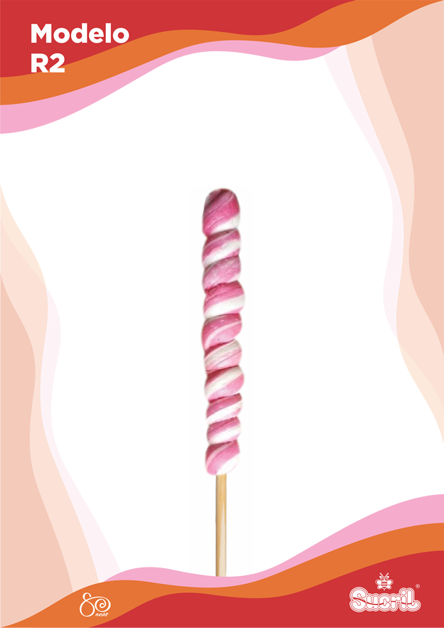 A história do modelo R é bem interessante. Nós também somos pioneiros no Brasil na produção desse pirulito. Esse modelo surgiu em meados da década de 70, tendo alguns exemplares enviados até ao Japão. Atualmente, é produzido em 3 tamanhos.